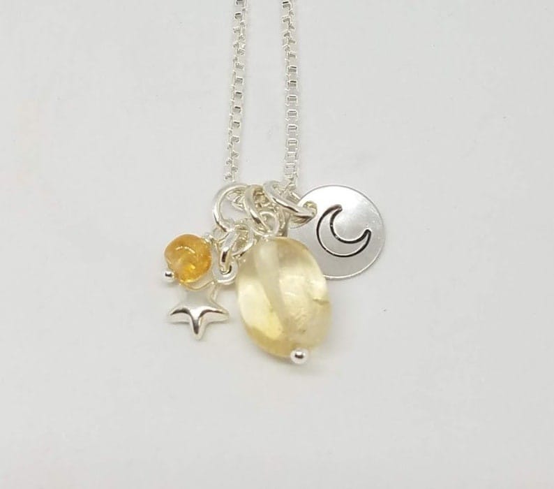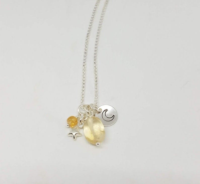 Sun Moon and Stars - Silver and Gemstone Charm Necklace